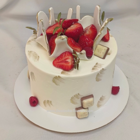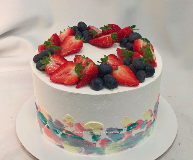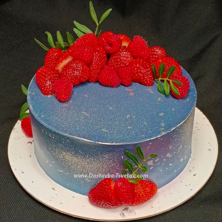 Contains an extraordinary flourless chocolate sponge cake based on dark chocolate, truffle ganache and cream based on dark chocolate. Decorated with fresh juicy berries and bright delicate cream. Berries on the cake may vary depending on the season. Cake weight - 2 kg. Order 7-9 days before the delivery date.